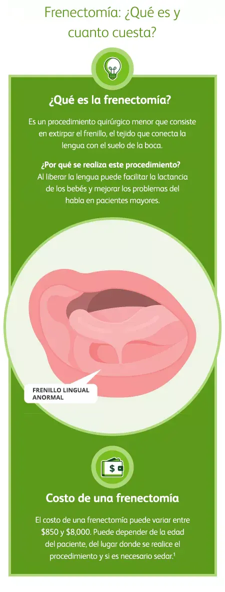 Dependiendo de su situación, es posible que el seguro dental o médico cubra la frenectomía. Si la frenectomía se considera necesaria por razones médicas, como problemas para comer, dificultades para hablar u otros problemas de salud, es muy probable que el seguro médico la cubra. Por ejemplo, si su médico o dentista determinan que el frenillo está limitando el movimiento y generando complicaciones, pueden brindar documentación de respaldo.